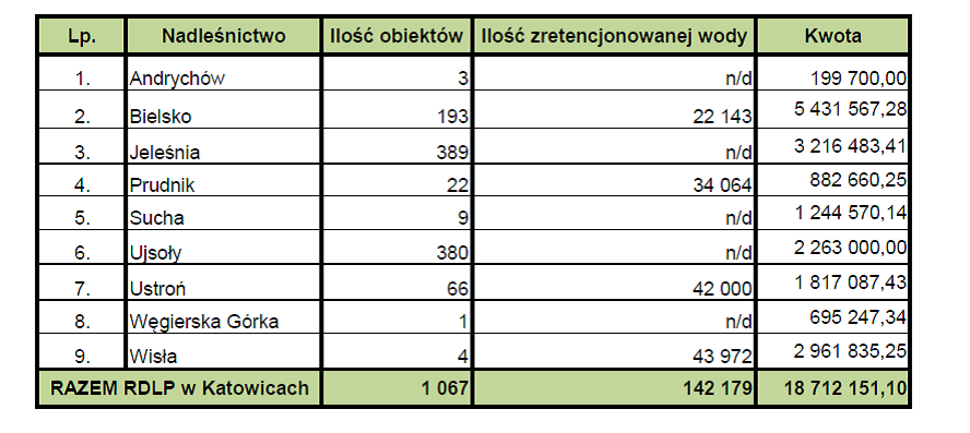 Nadleśnictwa realizujące projekt wykonały 3553 szt. obiektów i zretencjonowały ponad 1,5 mln m3 wody.