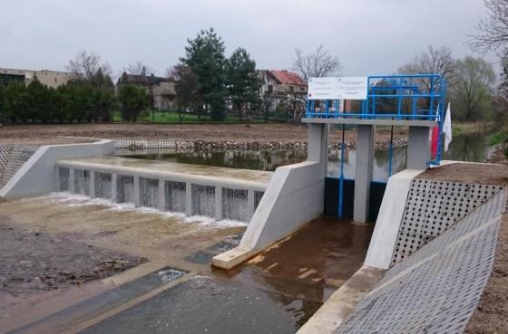 Efekt rzeczowy: Prace w ekosystemach wodnych - przebudowa jazu piętrzącego wraz z budową przepławki.